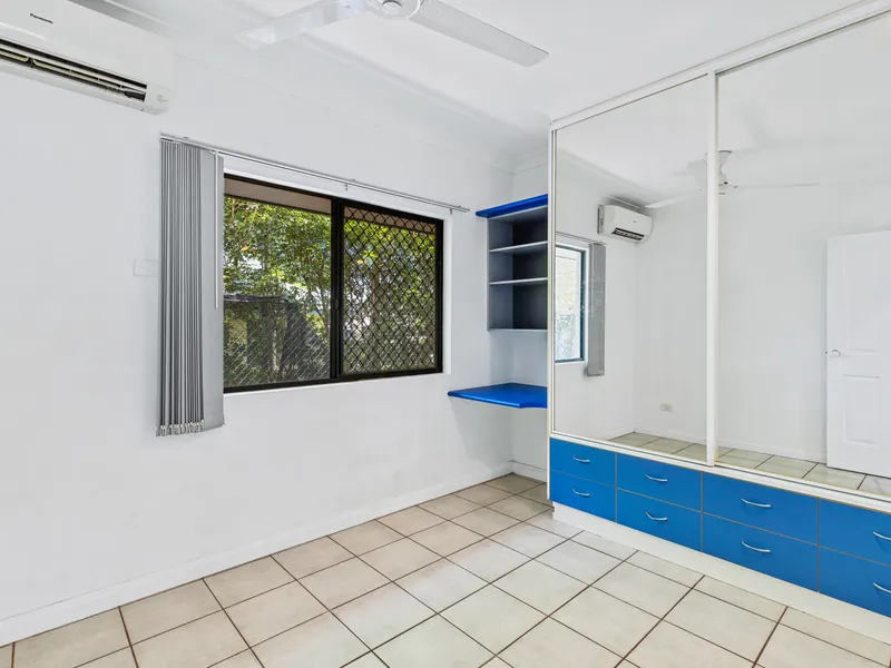 • Two additional bedrooms, each with air-conditioning, tiled flooring, and mirrored built-in robes.