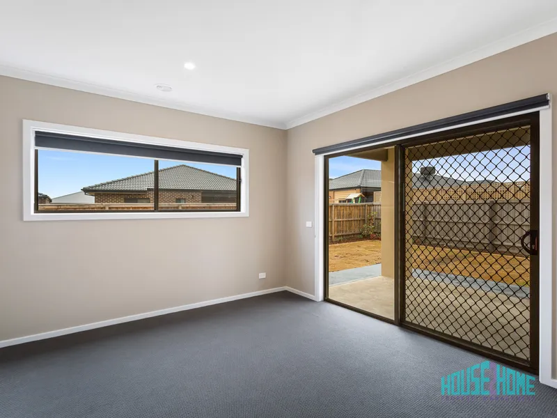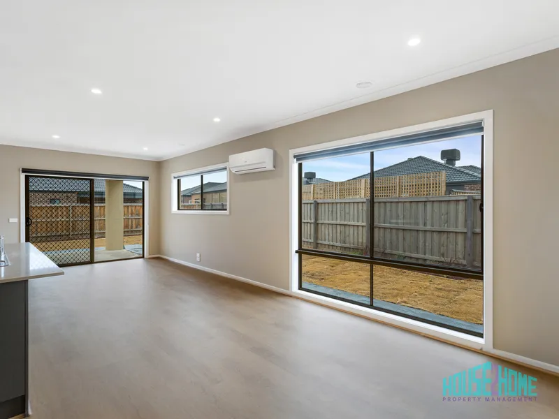 The living area is filled with natural light and includes a split system in addition to ducted evaporative cooling throughout the home. Sliding doors lead out to a covered outdoor entertaining area overlooking the landscaped backyard, designed with low-maintenance living in mind.