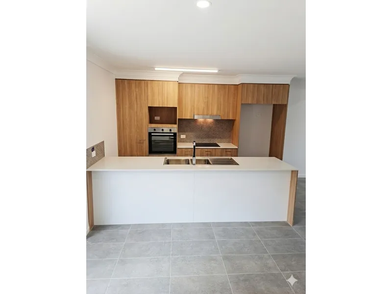 At the heart of the home sits the large, well-appointed kitchen, complete with a stone island bench, gas cooktop, oven, dishwasher, pantry and ample storage. Designed for both everyday living and entertaining, the kitchen flows seamlessly into the open-plan living area, which includes split-system air conditioning for year-round comfort.