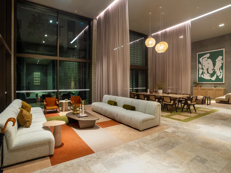 The residents lobby, adorned with 6m high ceilings, provides a welcoming atmosphere which offers a work from home space, all with complimentary coffee and tea for your convenience.