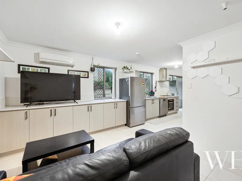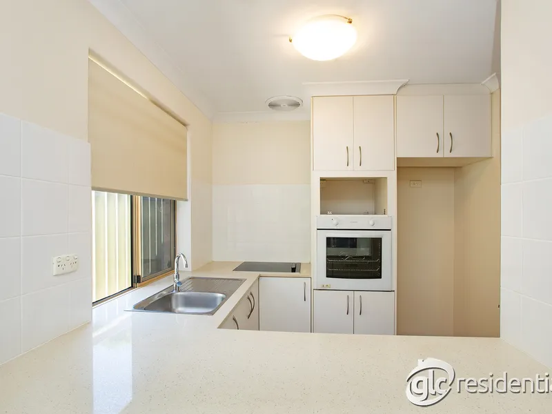 The home features a practical open-plan layout combining the kitchen, living and dining areas, with timber flooring throughout the living space. Generous bedrooms with soft carpet provide comfort, while the low-maintenance backyard and shaded patio create an ideal outdoor retreat.