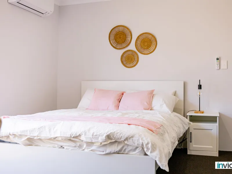 Inclusions: electricity, water, unlimited high-speed internet. Reverse-cycle air conditioning, smart-lock access.