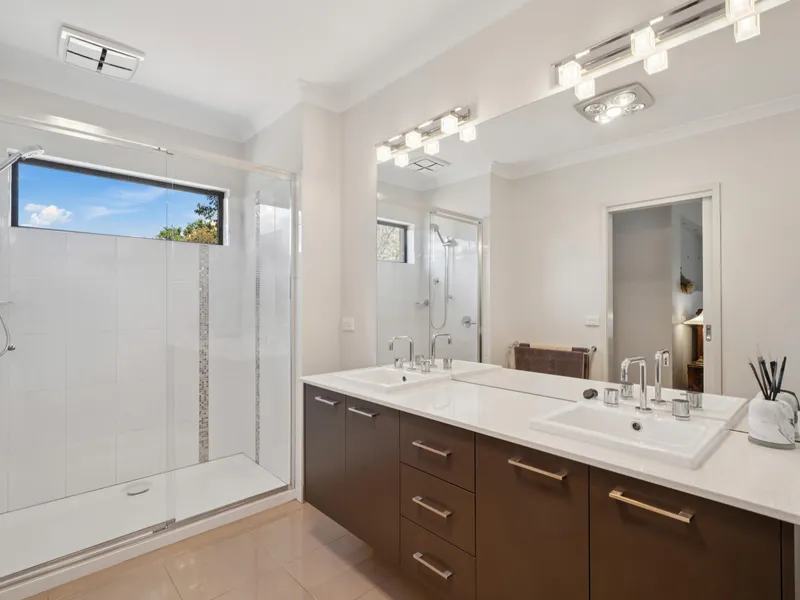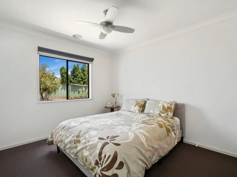 The home features four bedrooms, including a generous main bedroom complete with ensuite. Comfort is assured year-round with ducted refrigerated heating and cooling, a split system air conditioner, external blinds, solar panels to assist with energy efficiency, and 3-phase power connected.