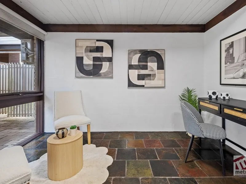 Designed for ease of living, it offers a flexible layout with three bedrooms, each with built-in robes, the master featuring its own ensuite, along with a separate study that can easily serve as a fourth bedroom.