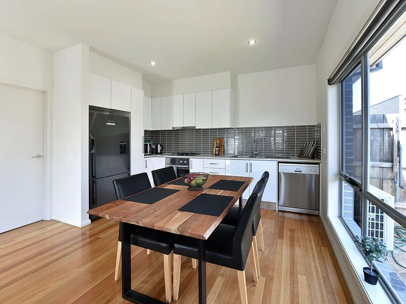 This spacious townhouse offers an abundance of privacy and natural light. Offering modern, light filled, open plan kitchen/living area, leading to a private courtyard. Space and comfort are paramount with ample kitchen cupboard space. With its clever floorplan the master bedroom situated downstairs and a further two bedrooms can be found upstairs all with BIRS and master with ensuite. Featuring split systems and floorboards throughout, carpeted bedrooms, powder room, central bathroom, study nook and remote controlled single garage plus off street parking for a 2nd car!