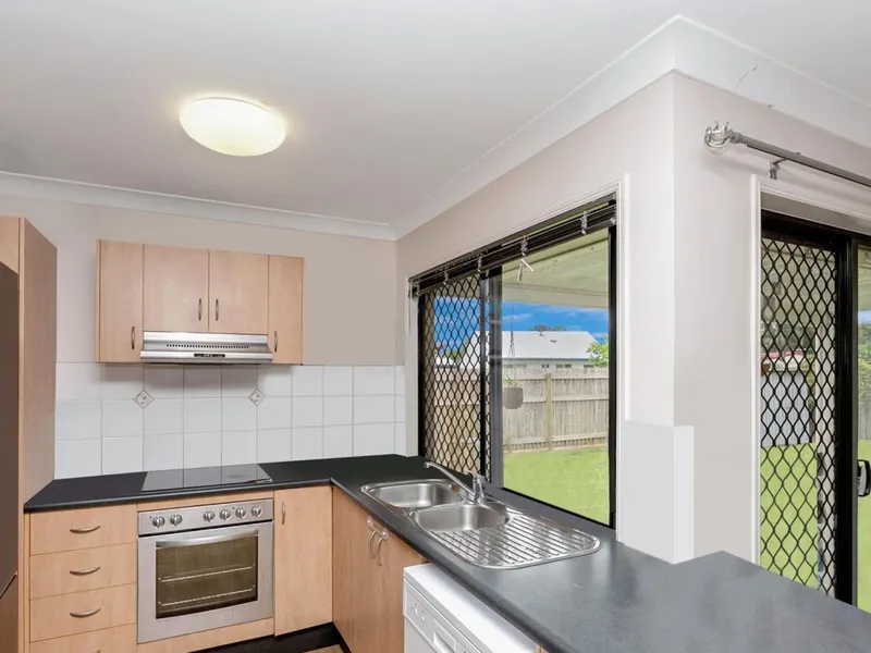 Tucked behind a secure fence, this well-presented and welcoming home offers a bright, comfortable lifestyle with plenty of space to enjoy. Designed with easy living in mind, the layout flows effortlessly from the functional kitchen, (complete with generous bench space and storage) through to the open-plan living and dining area. All three bedrooms are generously sized and include built-in robes, serviced by a centrally positioned bathroom. With air conditioning, ceiling fans, and security screens throughout, the home ensures comfort and peace of mind in every season. Outside, a covered patio creates the perfect setting for entertaining or unwinding, while the fully fenced yard with double gate access provides flexibility for families.