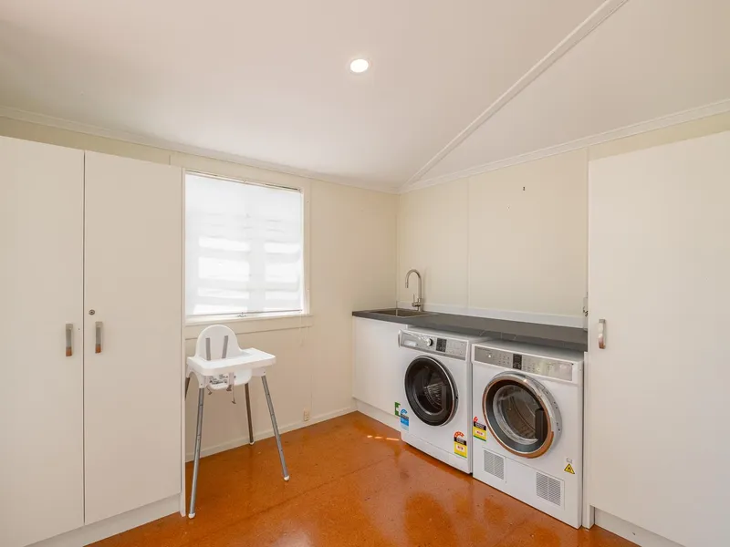 Undercover car parking for two vehicles underneath the home.
