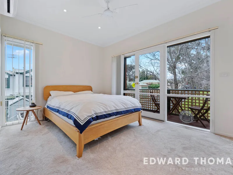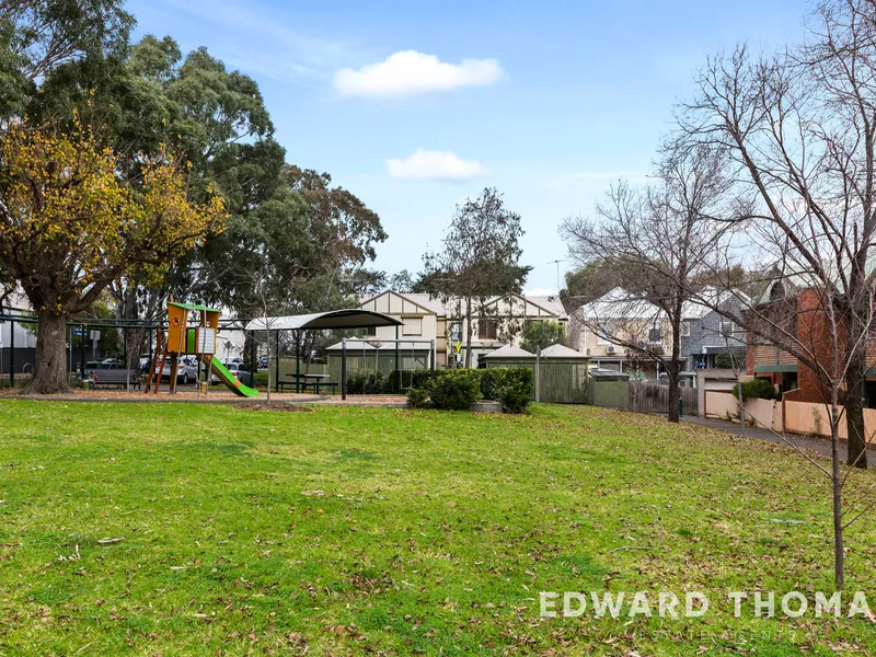 Upstairs, three generous bedrooms provide comfortable accommodation, including a spacious main bedroom with access to a private balcony overlooking the park—perfect for your morning coffee. A stylishly renovated bathroom adds a touch of luxury with contemporary finishes.
