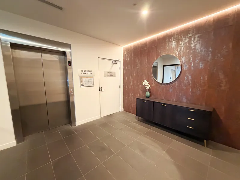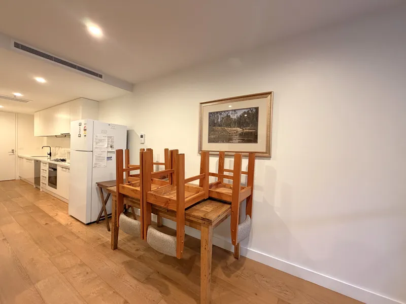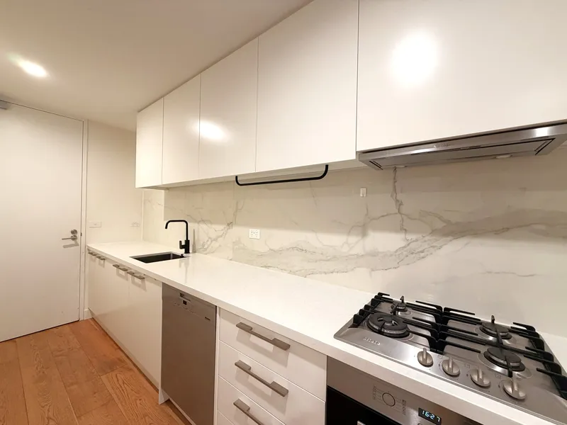 This luxurious one-bedroom apartment offers the perfect blend of convenience and lifestyle. Located just minutes from public transport, shops, restaurants and cafés, it features a light-filled open-plan living and dining area. The spacious bedroom includes built-in mirrored robes, while the beautifully appointed kitchen boasts porcelain marble splashbacks, stone benchtops and quality appliances.