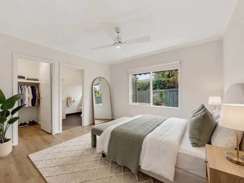 Features include an arched entrance hall with polished Baltic pine floors, a well-appointed kitchen with Jarrah benchtops, stainless steel appliances and Bosch dishwasher, and spacious open-plan living and dining areas opening to rear decking, paved entertaining areas and a private courtyard ideal for relaxing or entertaining.