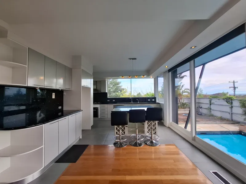 Positioned in a quiet and highly sought-after pocket of Kew, this impressive double-storey contemporary home offers exceptional family living, abundant natural light, and breathtaking uninterrupted northerly views toward the Northern Ranges. Architecturally designed to maximise light and outlook, the residence features expansive floor-to-ceiling glass windows that frame the spectacular views and flood the interiors with sunlight.