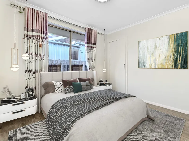 · High ceilings, timber laminate flooring, AC to the living room