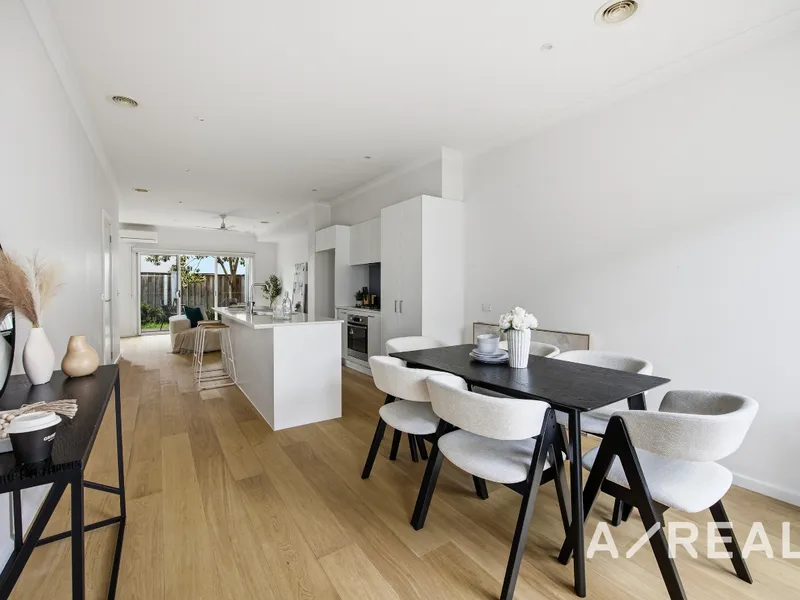 Step inside and be welcomed by a light-filled, spacious layout designed with family living in mind. The modern kitchen is equipped with a gas cooktop and dishwasher, while the open plan living and dining area offers a warm and inviting space to relax or entertain.
