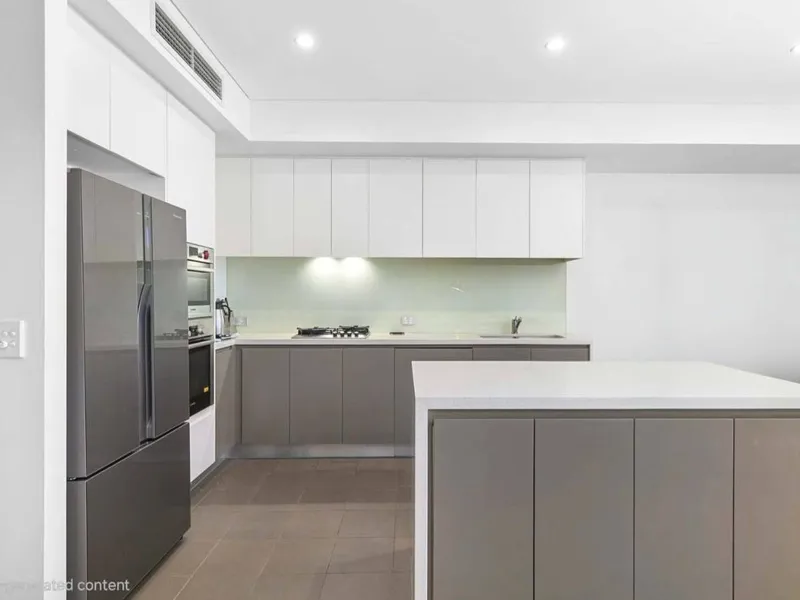 Modern kitchen fitted with electric appliances and ample storage