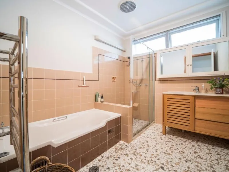 Floor board. Open plan living with aircon. Two generous bedrooms, two large built ins, well equiped kitchennette, full bathroom with a bath and separate shower, and heated towel rails. Separate toilet. Built in dishwasher and front load Miele dishwasher.