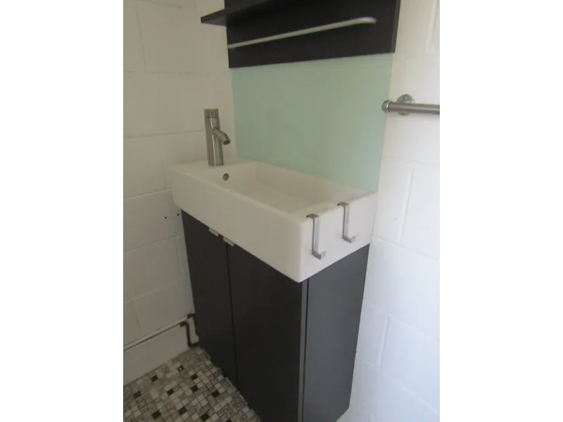 - Bathroom with shower, vanity & toilet