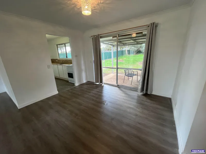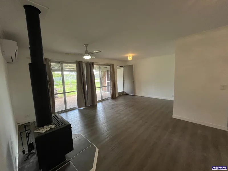 Inside, the home offers a generous lounge room and separate dining area, with year-round comfort provided by both a wood heater and reverse-cycle air conditioning.
