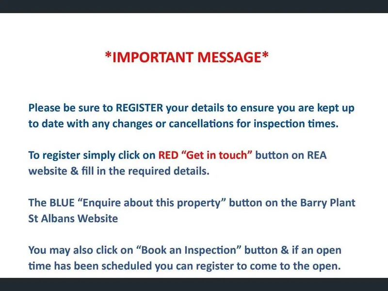 Simply click on the blue "Request/Book Inspection Time" button to arrange a suitable viewing time, use the "Contact Agent" facility to receive registration LINK or fill in the "Enquire About" section via the Barry Plant St Albans Website.