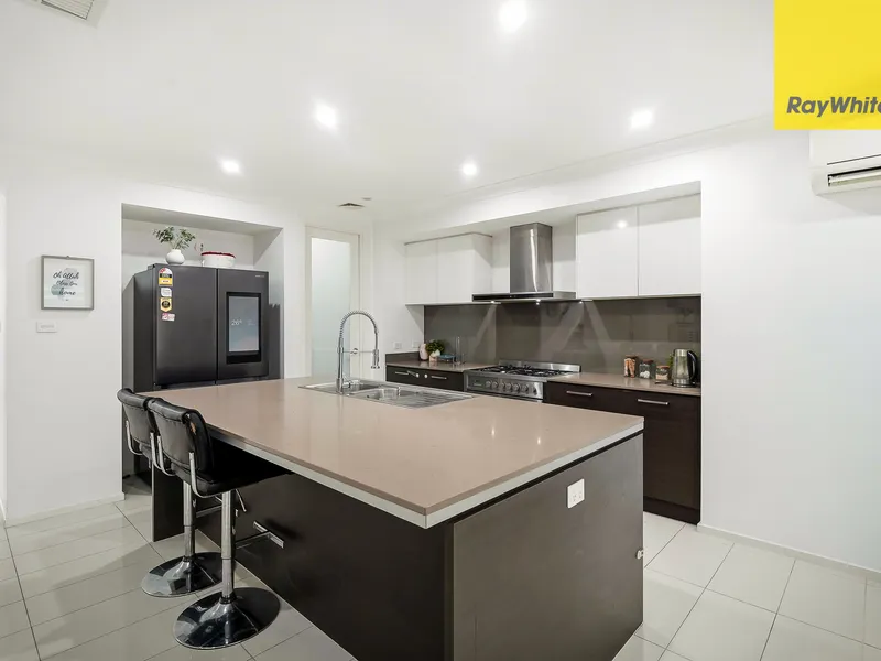 • Galley style kitchen + ample bench space + breakfast bar