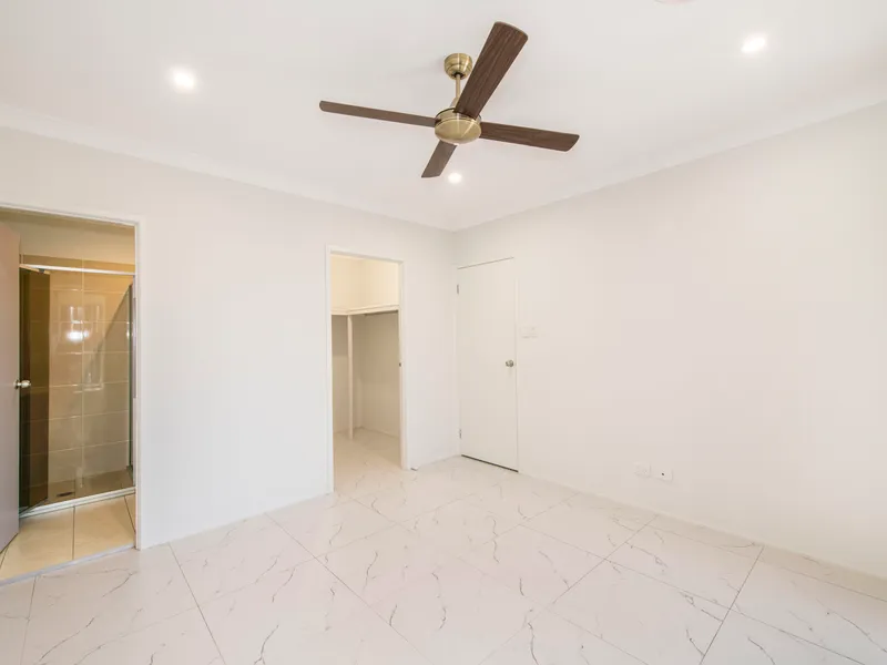 - Master bedroom with built-in robe and ensuite and ceiling fan