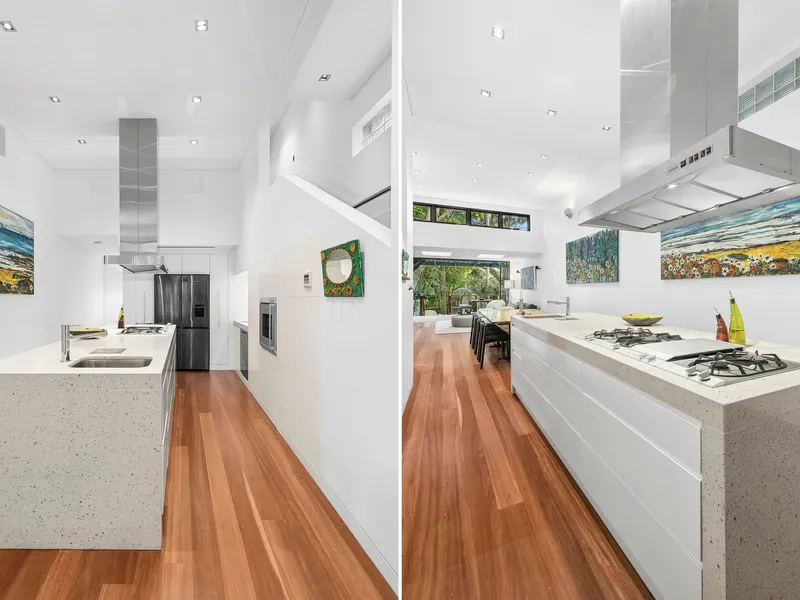 In a premier village-side pocket, this freestanding full brick home makes a lasting architectural statement with proportions that are family friendly. Beyond its walled and gated exterior, the home is deceptive, opening to a substantial multi-level floorplan that flows out to a stunning resort inspired deck and gardens. It's thoughtful split level design aids separation whilst nailing the brief for open plan living and entertaining. The home has been crafted to perfection, enjoying a prime walk to the village, bus, rail, ferry, weekend markets and prestigious schools.