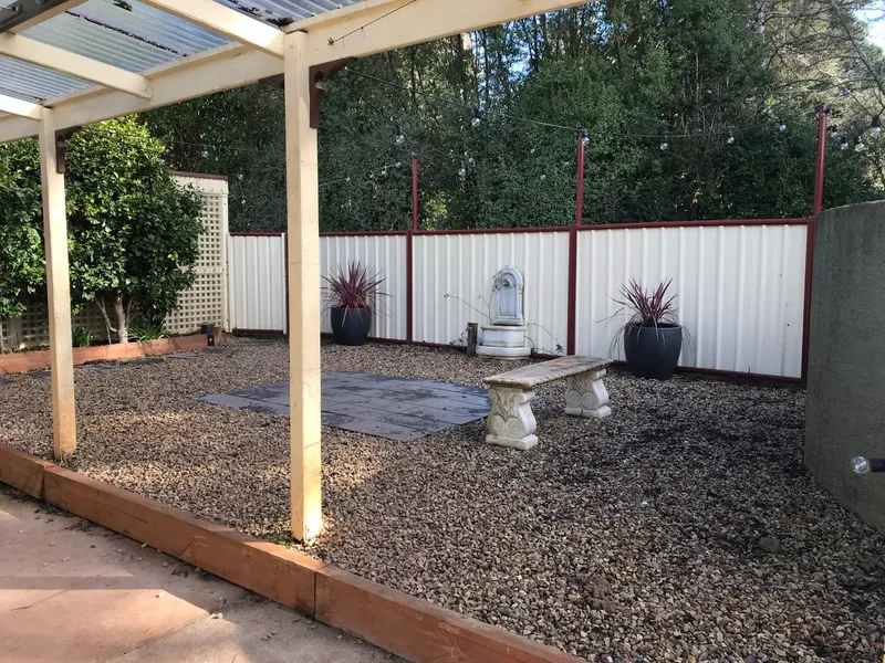 Nestled behind a large hedge for ultimate privacy, the home boasts 3 bedrooms, the master bedroom with ensuite, a study/nursery next to the master bedroom, a central bathroom with laundry, front living room, central kitchen with meals area and wood fire & Dishwasher. Moving to the rear of the house there is a study nook before going out to the large backyard. The backyard offers a big shed and a good sized lawned area with views of Wombat Forest. Around the side of the cottage, with the kitchen overlooking, is a lovely space that is ideal for an entertaining area. The property has a side entrance with a secure garage.