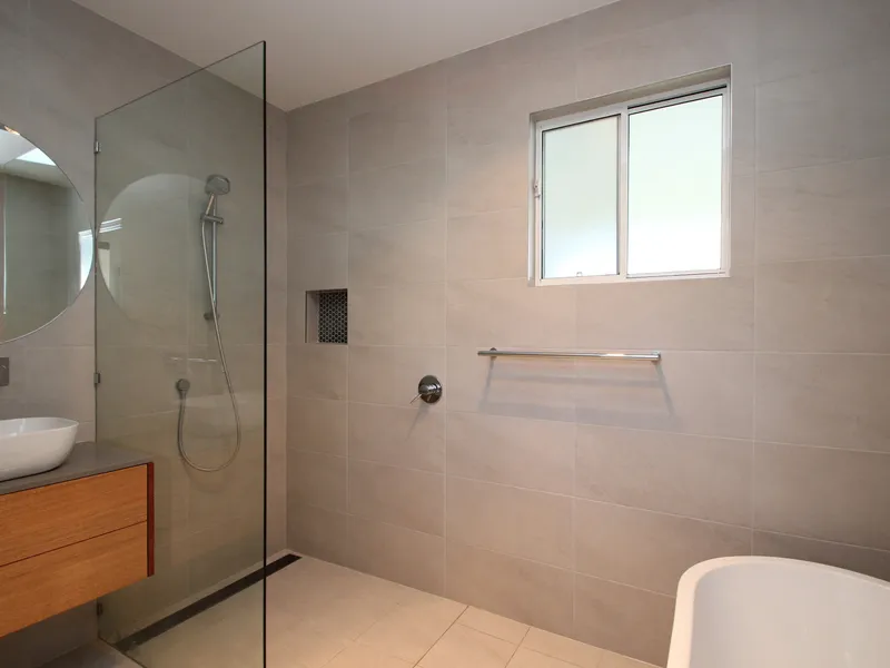 - Main bedroom with ceiling fan, a/c, walk in robe and ensuite