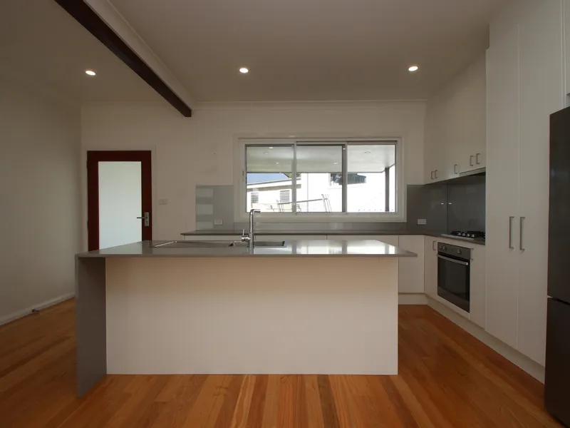 - Renovated kitchen with stone bench tops, stainless steel appliances and gas cooking