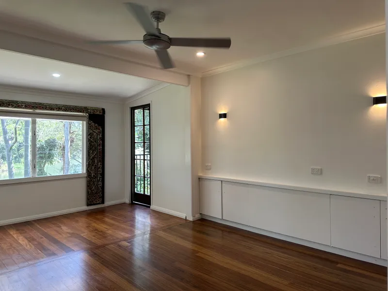 • Open plan living area with high ceiling and windows provide plenty of light, opening to an undercover verandah overlooking the river;