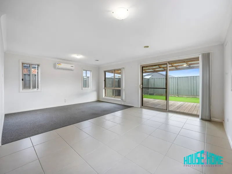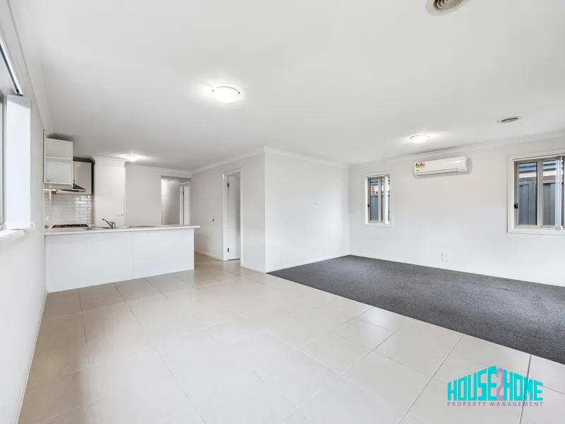 At the heart of the home, the light-filled open-plan kitchen, meals, and living area creates a welcoming space for everyday living and entertaining. Large windows allow an abundance of natural light to flood the space, while the kitchen is well equipped with stainless steel appliances including a dishwasher, generous bench space, ample cabinetry, and a spacious pantry. Split system cooling services the main living area, with ducted heating providing year-round comfort throughout the home.
