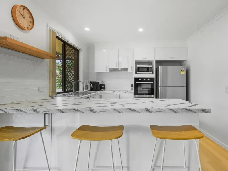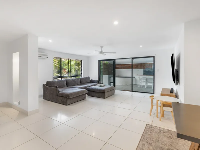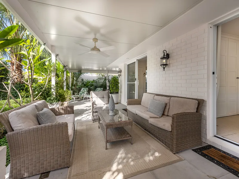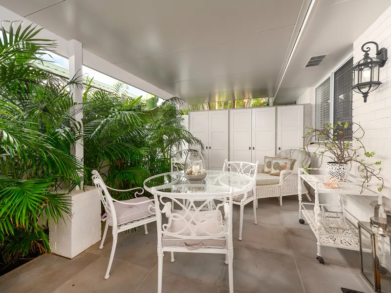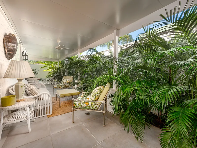 The property is encircled by an oversized wrap around patio with a lush tropical garden. It has an outdoor lounge suite and dining area, so you have double the entertaining space. This garden sanctuary is completely screened, so it’s all yours.