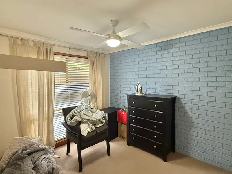 The home features a practical layout with three bedrooms, two bathrooms, and multiple parking spaces for up to three vehicles, with room for cars, a boat, or a caravan. The fully fenced front and back yard offers plenty of space for outdoor living, gardening, or simply enjoying the peaceful surroundings.