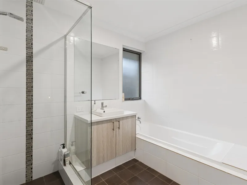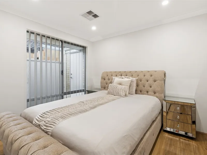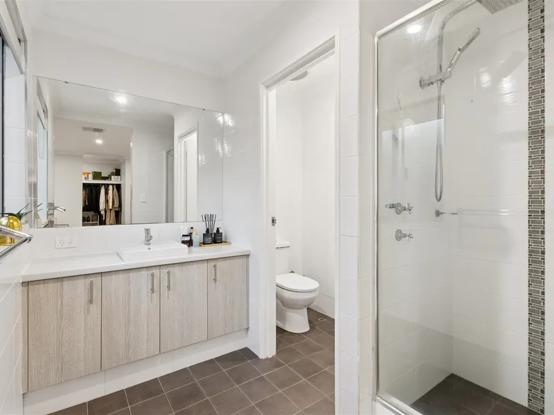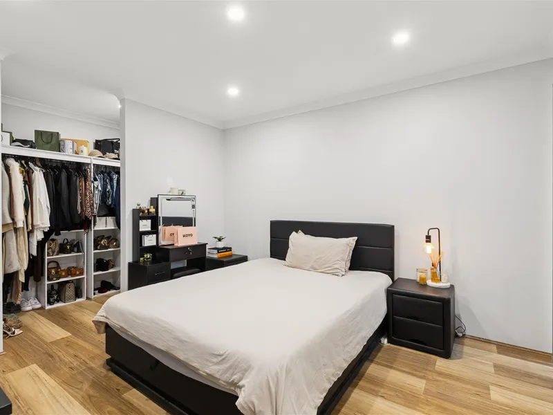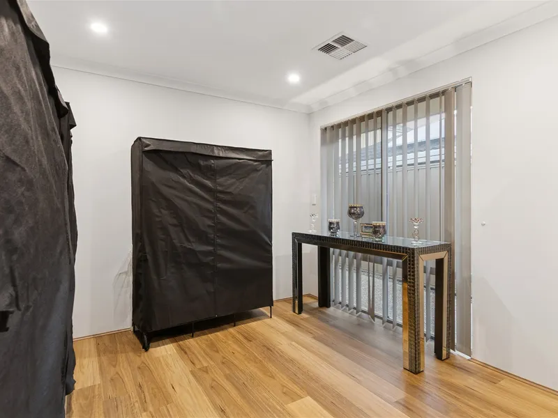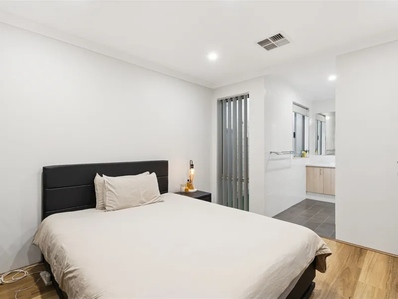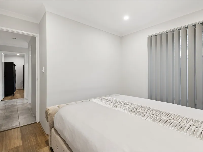 open-plan living area, filled with natural light, flows seamlessly to the alfresco and easy-care backyard. The kitchen provides ample storage, stone bench tops, and a breakfast bar, perfect for everyday functionality. A front lounge provides additional family space, while the master bedroom features a generous walk-in robe and a stylish ensuite, perfectly balancing practicality and desirability. With ducted reverse-cycle air conditioning and solar panels, this quality home embodies both comfort and style. Situated across from Landsdale Gardens Primary School, the open surroundings offer excellent walking paths & recreational activity.