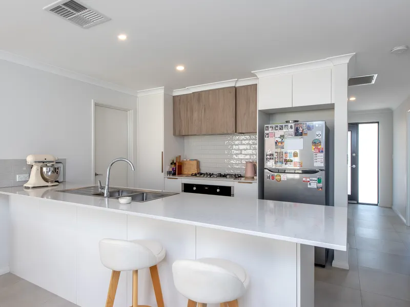 This well-designed home features a functional floorplan with light-filled living spaces and a modern kitchen that flows seamlessly into the open-plan living and dining area, creating the perfect space to relax or entertain.