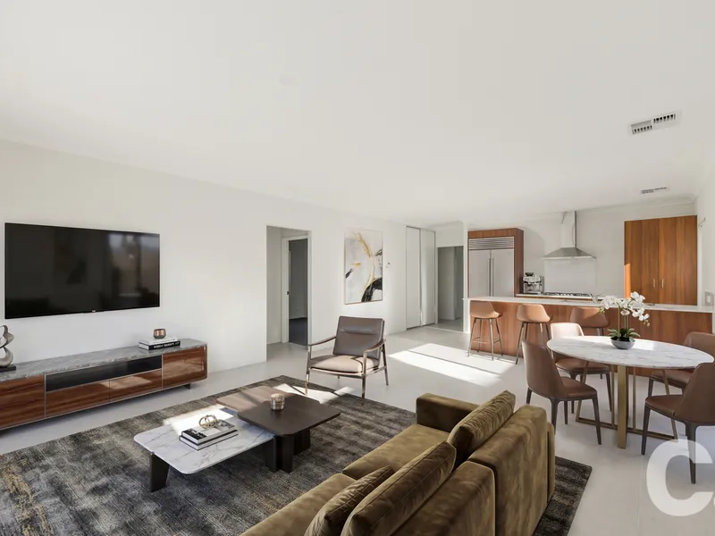 Inside, the home features a welcoming kitchen and living area creating a functional hub for everyday living.
