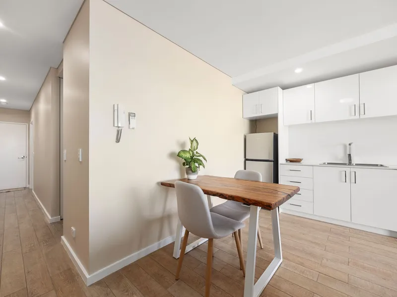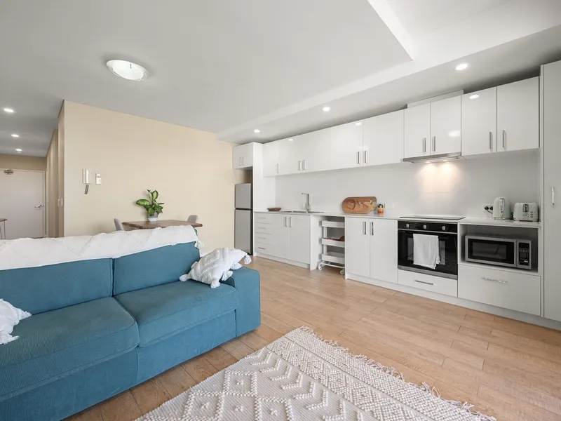 Experience sophisticated open-plan living with stylish modern finishes throughout. The expansive living area extends seamlessly to a private balcony, where breath taking city views take centre stage.