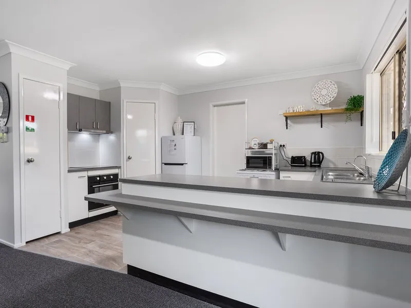 - Contemporary kitchen with quality appliances, ample storage, and large island bench