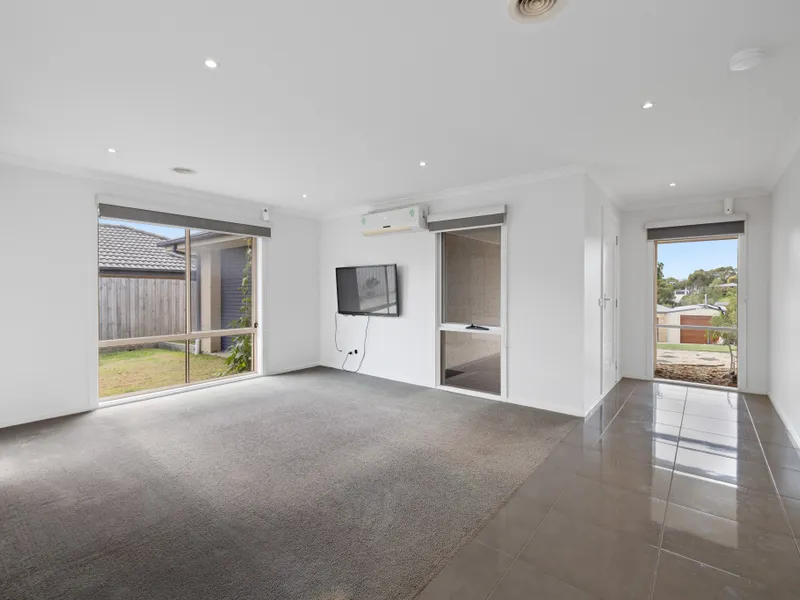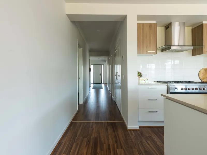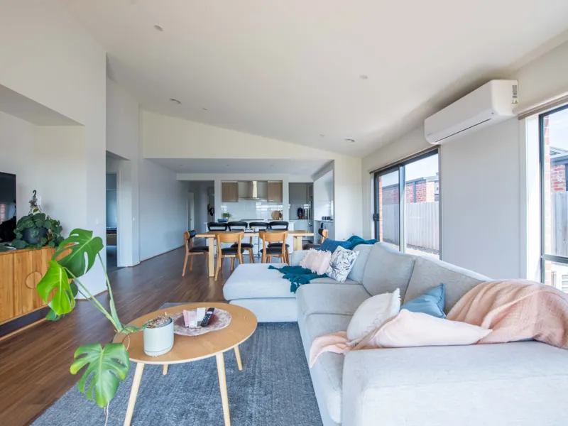 The home features a welcoming lounge room at the front of the house, perfect for relaxing or entertaining, while the main open-plan living and dining area is positioned at the rear, creating a great separation of spaces.