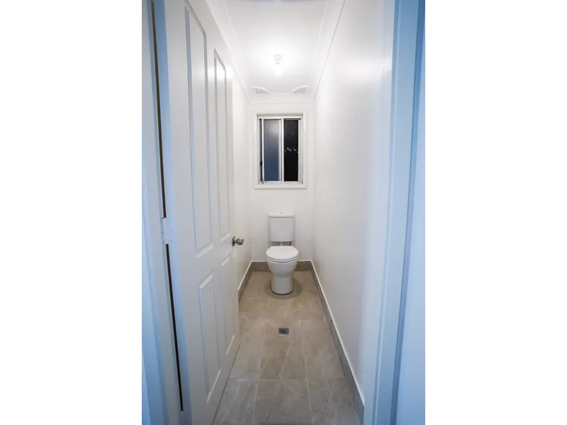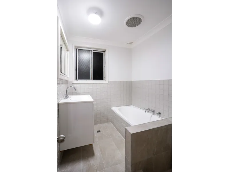 The stylish bathroom is thoughtfully designed with both a separate bath and shower, complimented by a separate toilet, ideal for family living. New hybrid floorboards throughout add a modern touch and are easy to maintain, while also being allergen-friendly.