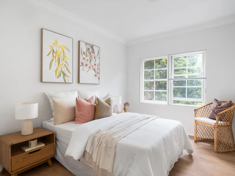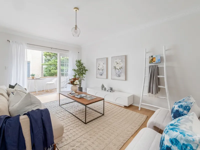 Sunlit interiors flow from the spacious open-plan living and dining area to a balcony, perfect for morning coffee or relaxed entertaining. The master bedroom is a peaceful retreat with built-in robes, a chic ensuite and Juliet balcony.