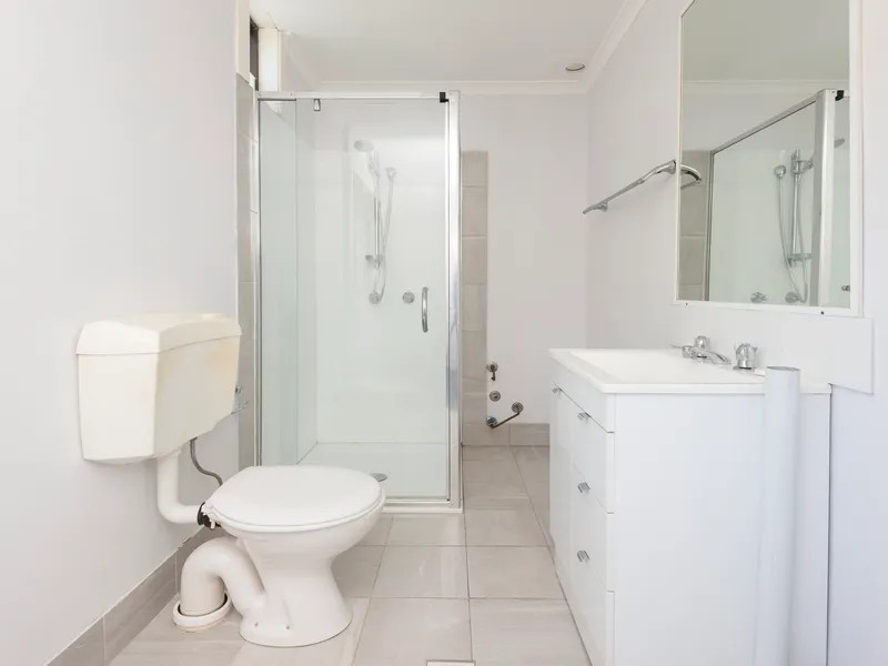 The property offers an open-plan layout, combining the living and bedroom space into one functional area that is easy to maintain. The bathroom and laundry are also combined, adding to the practicality and efficient use of space.