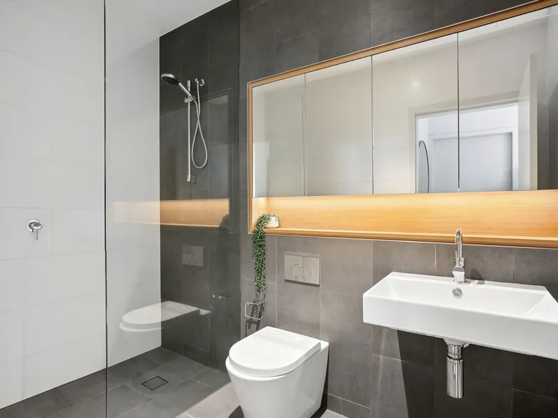 - Stylish bathroom with incorporated cabinetry and quality refined finishes