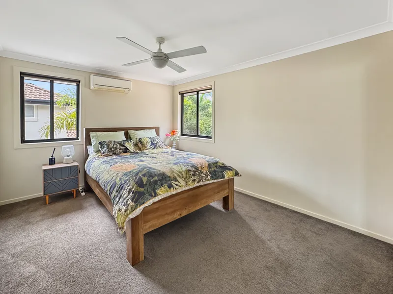Set just five kilometres from Dicky Beach and backing directly onto a peaceful nature reserve, this fully furnished four-bedroom, two-storey home offers generous space, privacy and relaxed family living in a highly convenient Little Mountain location. With multiple living zones, air-conditioning throughout and excellent outdoor entertaining, the home is ideal for families seeking comfort and flexibility or those looking to live within close proximity to the Sunshine Coast University Hospital.