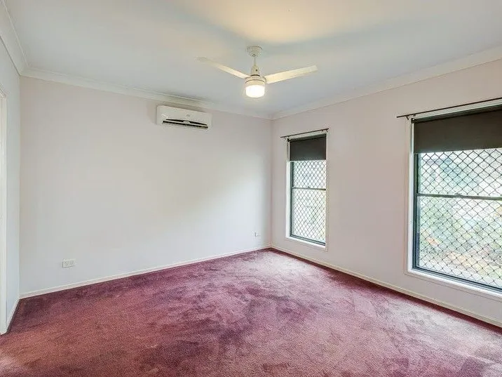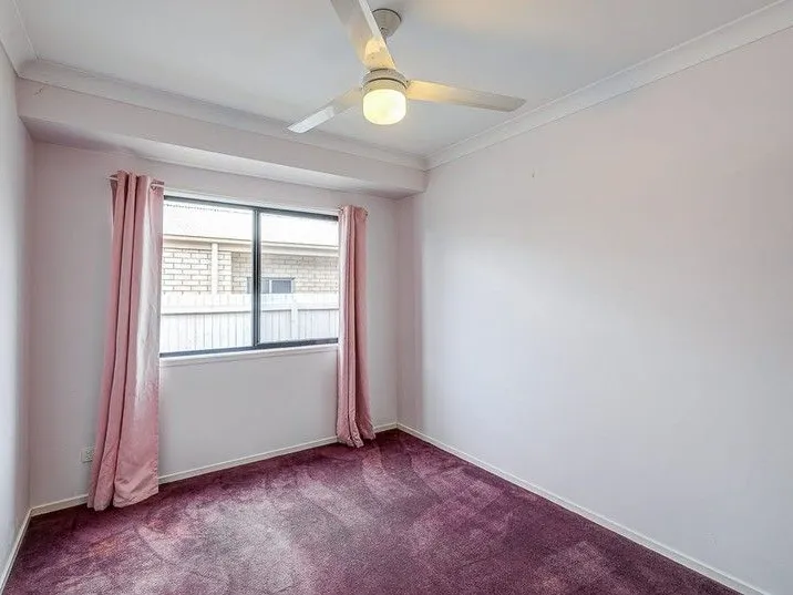Two additional bedrooms are positioned close to the main bathroom. Both are carpeted and include built-in wardrobes and ceiling fans, ensuring comfort and privacy for family or guests.