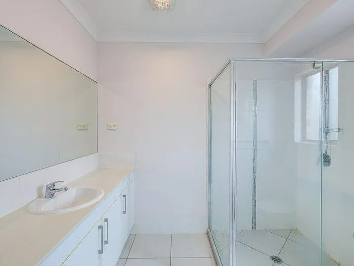 The master suite is a true retreat, generously proportioned and equipped with air conditioning, a ceiling fan, a spacious walk-in wardrobe, and a well-appointed ensuite. The ensuite features an extended stone-top vanity, offering plenty of space for your daily routine.