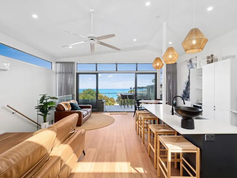 Modern stylish house featuring expansive ocean view.