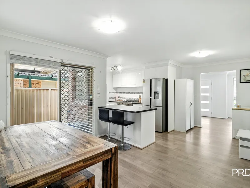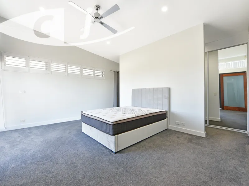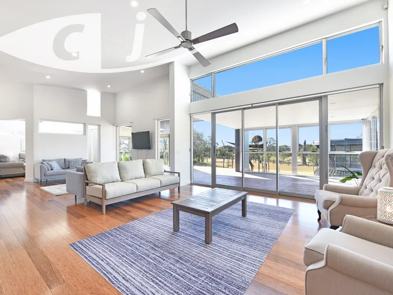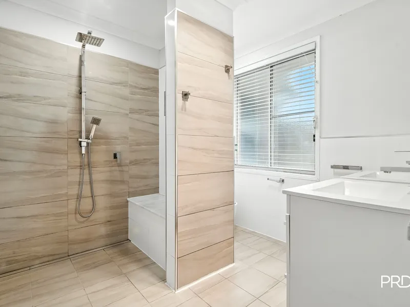 -Large open plan living space with multiple living options and skillion ceiling that peaks at 3.9 metres.