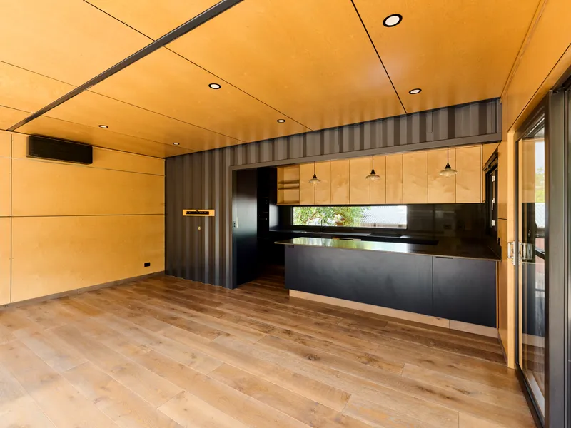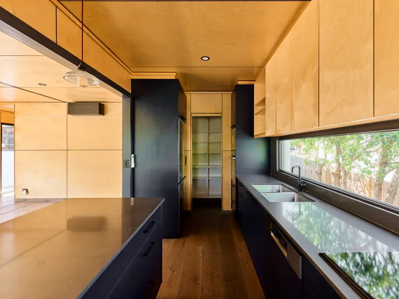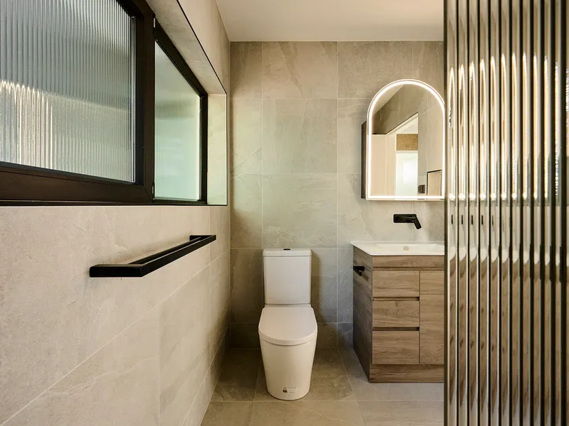 Behind its modest façade lies a striking transformation. The home showcases warm timber tones, textured feature walls, custom joinery and high-end finishes throughout, creating a cohesive and sophisticated aesthetic.