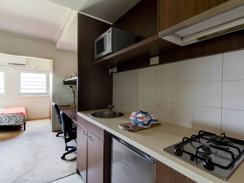 Comprising of kitchen with gas cooking and microwave, with modern private bathroom, study area with built in desk, built in robe, air conditioning and heating (no air con in building D)..
