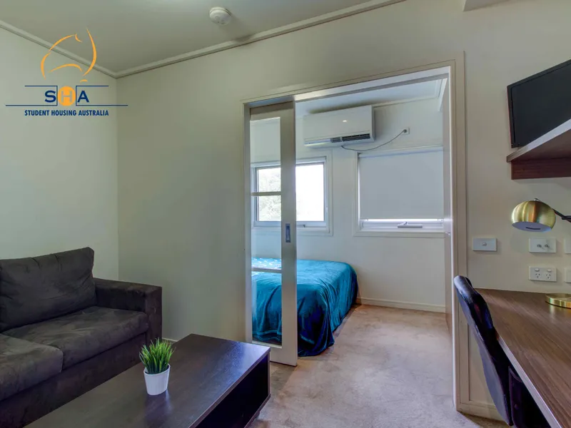 Comprising of kitchen with gas cooking and microwave, with modern private bathroom, study area with built in desk, built in robe, air conditioning and heating.